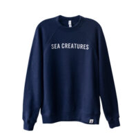 - Navy blue with 'SEA CREATURES' screen-print lettering.